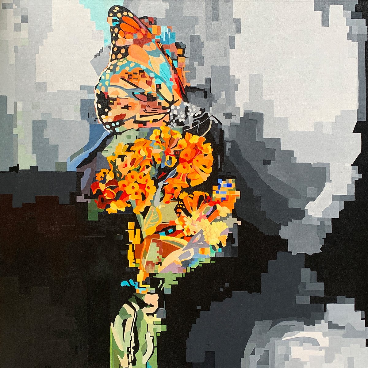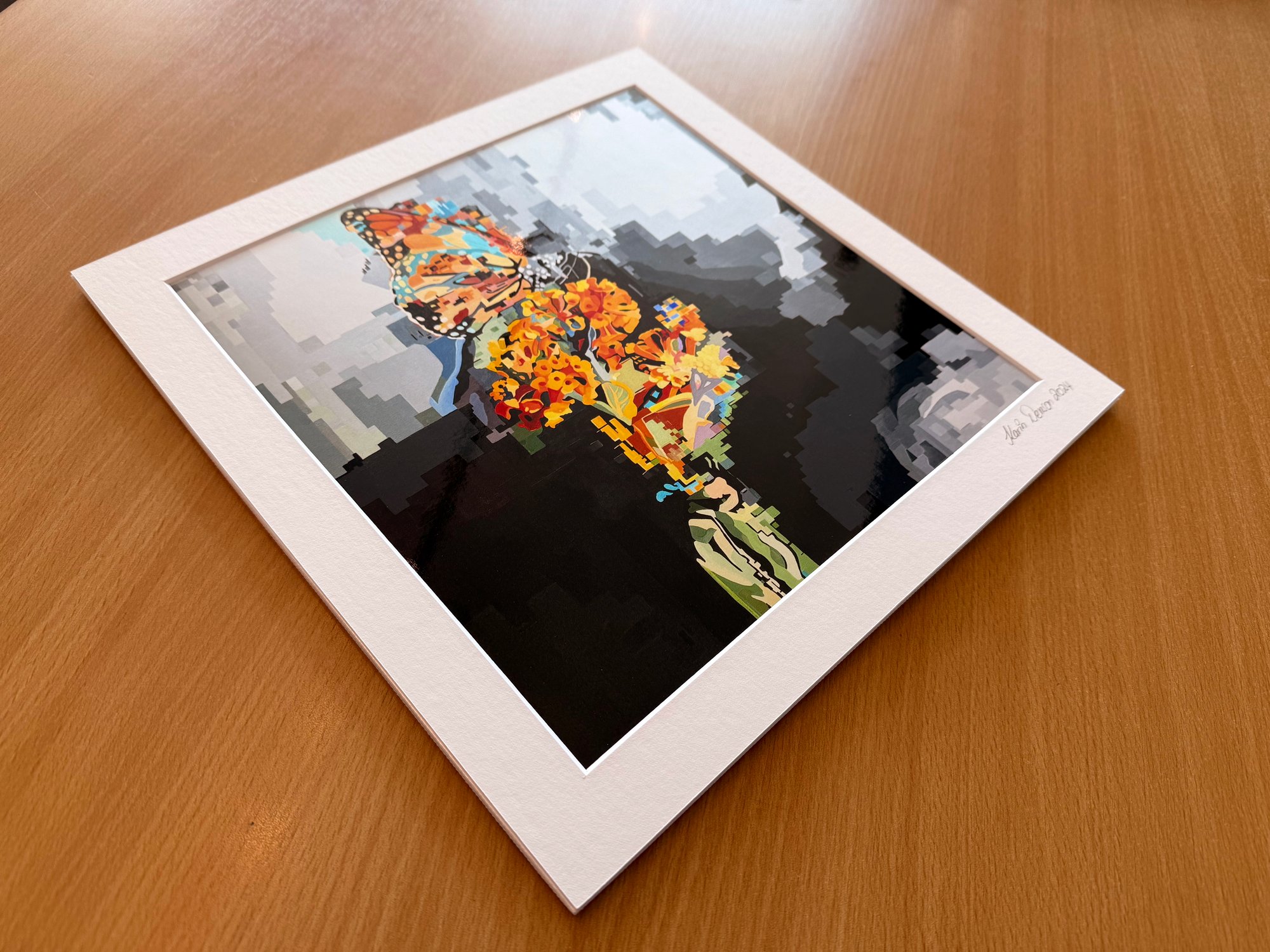 Print from an original painting, 10" x 10" pearl paper, 12" x12" with single white foam mat